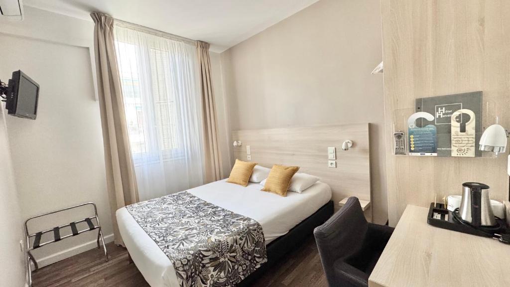 All'Hotel Helvetique di Nizza, ogni camera è un rifugio di comfort e stile, progettato per soddisfare le esigenze di ogni ospite. Gli ambienti sono dotati di aria condizionata, garantendo un soggiorno piacevole anche nelle calde giornate estive. Per coloro che amano rimanere aggiornati, è disponibile un quotidiano giornaliero, perfetto per iniziare la giornata con le ultime notizie.