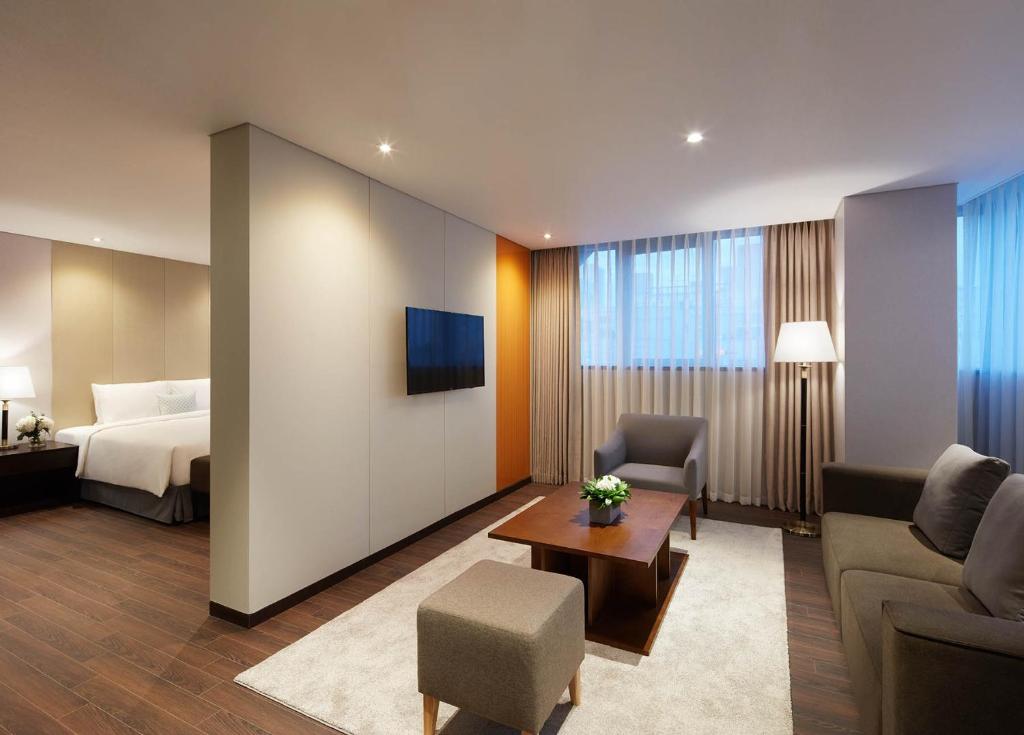 Il Howard Johnson by Wyndham Incheon Airport (Korea Quality) offre una varietà di camere pensate per soddisfare le diverse esigenze degli ospiti. La Deluxe Family Twin, con i suoi 30 metri quadrati, è ideale per famiglie in cerca di comfort e spazio. Per chi desidera un'esperienza di lusso, il King Premier Suite si estende su 60 metri quadrati e presenta un elegante letto king-size, perfetto per un soggiorno indimenticabile. Gli ospiti possono anche scegliere la Superior Double, che offre 26 metri quadrati di accoglienza con un letto matrimoniale, oppure la Superior Twin, con i suoi 28 metri quadrati e due letti singoli, ideale per viaggiatori che condividono lo spazio senza compromettere la privacy.