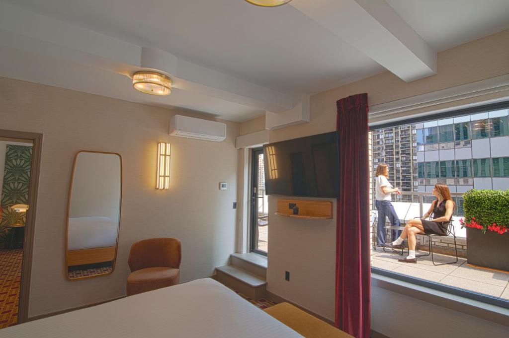 I tillegg til de luksuriøse fasilitetene, tilbyr rommene også et separat oppholdsrom, perfekt for å slappe av eller planlegge morgendagens eventyr. Hver enhet har også et kjøleskap, slik at du kan oppbevare forfriskninger og snacks. Badene er utstyrt med kvalitets-toalettartikler, og du vil finne myke håndklær og sengetøy som gir en ekstra touch av luksus. Med en balkong eller terrasse tilgjengelig i utvalgte rom, kan du nyte den friske luften og den fantastiske utsikten over New Yorks skyline. Hotel Edison er virkelig et perfekt valg for reisende som ønsker både komfort og stil.
