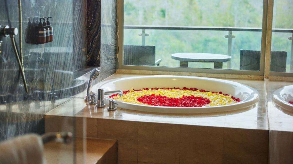 Våkn opp til en flott kontinental, og buffé-frokost kl. RIMBA by AYANA Bali. Du kan nyte frokost mot et pristillegg på 242000 IDR for barn og 484000 IDR for voksne hvis det ikke er inkludert i romprisen. Du kan spare mer på frokostkostnadene med Agoda ved å bestille et rom med frokost, som ofte er inkludert til en lavere pris enn hvis du hadde kjøpt det på hotellet.
