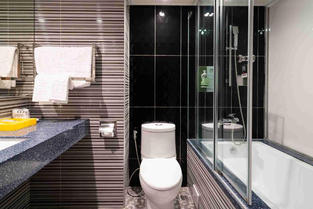 We paid about NT2000 per nite for a room for 3 adults, spacious, clean, quiet, confortable bed & pillows. Many little pleasant surprises that this hotel offers that we rarely encounter for its price. A big bathtub, a nice clean shower, and a filtered drinking water tab next to the sink. We arrived around 12 noon, without asking, the reception let us check into our room without any early fee as the room was ready. The breakfast menu was big, from fried noodles to porridge, some vegetable and chicken/pork dishes, toasts, sausages, salad, etc. No voucher is needed. You can have as many rounds if you like from 7am to 10am. They serve free popcorn, ice cream with cones, herbal eggs, biscuits, coffee, and tea throughout the day at the dining hall. You can just help yourself. Laundry and dryer service are free. You can buy a small pack of washing powder from reception at NT20 each. There are laundry baskets for your convenience, too. Some parking at the back of the hotel and basement with the car lift. Staff at the front desk and housekeeping were very helpful and friendly too. The hotel is on a busy street. Walking distance to many eateries.