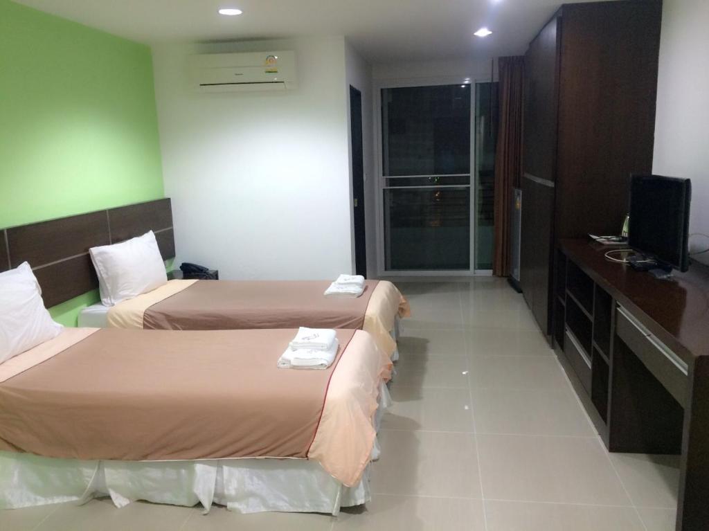 เดินจากBTSราชเทวีประมาณ400เมตร ไม่ใกล้ไม่ไกล แต่ช่วงที่ไปพักมีซ่อมถนน(น่าจะใช่) มีการปิดทางเดินเท้า ต้องเดินลัดเลาะโซนก่อสร้าง ค่อนข้างอันตรายแต่เจ้าหน้าที่ที่ดูแลการซ่อมให้บริการและอำนวยความสะดวกอย่างดี ในส่วนของที่พัก พนักงานบริการดี พูดจาสุภาพ มีคีย์การ์ดเข้าออก มีลิฟต์ให้ใช้ด้วยสะดวกมากๆ ในห้องพักโต๊ะเครื่องแป้งกับโต๊ะทีวีตั้งยาวเป็นแนวเดียวกัน เสียดายมากที่หน้ากระจกไม่มีไฟให้ใช้ แต่งหน้าลำบากนิดนึง(อยากให้ที่พักติดไฟเพิ่มขอเป็นแสงขาวนะ) ไม่มีไม้แขวนเสื้อให้ มีฝุ่นตามเฟอร์นิเจอร์นิดหน่อย เตียงนุ่มไปนิดนอนแล้วปวดหลังนิดนึงแต่ไม่แย่นะ นอนได้ ห้องน้ำกว้างกำลังดี แอร์เย็นฉ่ำสุดๆ มีไดร์เป่าผมให้ชอบตรงนี้ แต่ปลั๊กไฟในห้องบางช่องเสียบแล้วใช้งานไม่ได้ นอยนิดนึง ดีที่มีหลายช่องให้ใช้งาน ตู้เย็นคือแทบไม่ได้ใช้งานเลยเพราะค้างคืนเดียวเอง ด้านล่างมี7-11สะดวกสุดๆ โดยรวมดีค่ะ