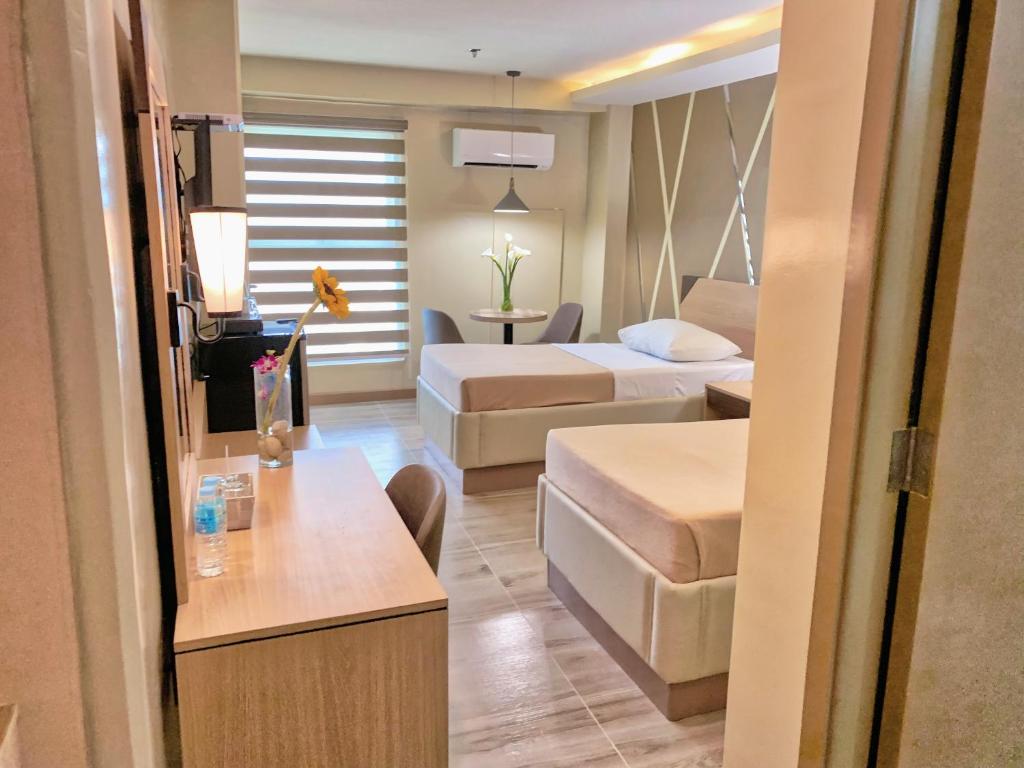 คืนแรกที่เรามาถึง ในฐานะครอบครัวขนาดห้า เราจองห้องพักระดับเอกซ์เซ็กคิวทีฟสองห้อง เสียใจที่ประสบการณ์เริ่มต้นไม่ดีเลย แผ่นที่นอนในทั้งสองห้องรู้สึกไม่สะอาด ราวกับว่ามีคนเคยนอนอยู่ในนั้นและมีเหงื่อออก แม่ของผมที่พักอยู่ในห้องอื่นก็ยืนยันปัญหาเดียวกัน ขณะที่พนักงานทำความสะอาดแผ่นที่นอนในวันถัดมา ดูเหมือนว่านี่คือส่วนหนึ่งของกิจวัตรประจำวันของพวกเขามากกว่าที่จะเป็นการตอบสนองโดยตรงต่อความกังวลของเรา อีกจุดหนึ่งที่ทำให้รู้สึกหงุดหงิดคือค่าธรรมเนียมเพิ่มเติม หมอนเสริมมีค่าใช้จ่าย ₱50 ต่อคืน และการขอการ์ดกุญแจเพิ่มเติมต้องมีเงินมัดจำ ₱1,000 การให้การ์ดกุญแจเพียงหนึ่งใบต่อห้องนั้นไม่ปกติสำหรับโรงแรมประเภทนี้ แม้ว่าประสบการณ์นี้จะไม่ทั้งหมดในแง่ลบ—พนักงานเป็นมิตรและยามรักษาความปลอดภัยก็ให้บริการได้ดี—แต่คุณภาพโดยรวมของโรงแรมดูเหมือนว่าจะลดลงในช่วงเวลาที่ผ่านมา ห้องพักควรจะมีการปรับปรุงเพื่อเพิ่มความสะดวกสบายและบรรยากาศ เช่น การเพิ่มเตียงขนาดคิงไซส์และการปรับปรุงการตกแต่ง ห้องพักรู้สึกโล่งและขาดความอบอุ่น