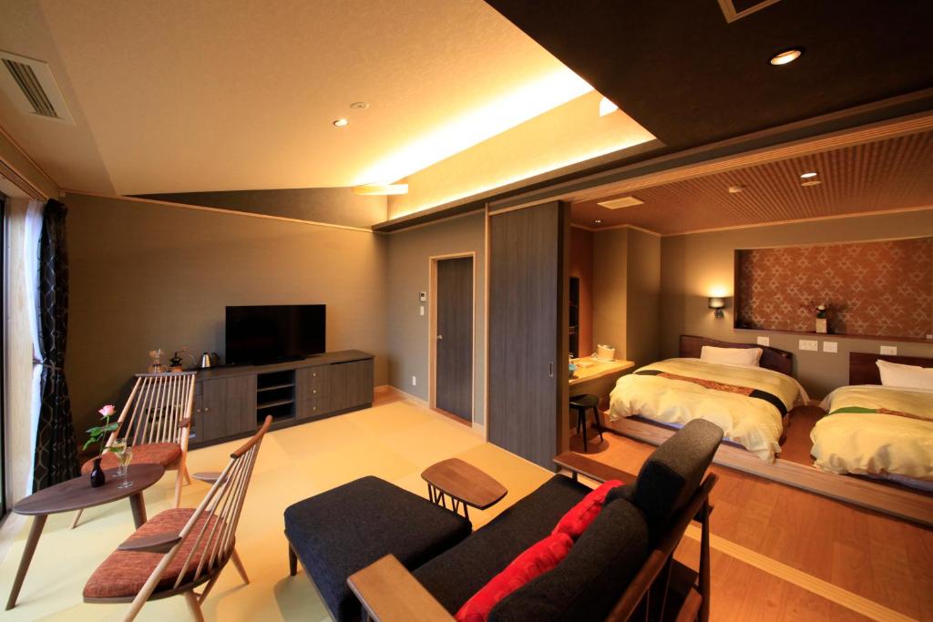 เราพักในห้องที่สวยงามพร้อมกับอ่างจากุซซี่ส่วนตัวบนระเบียง ห้องพักนั้นสะดวกสบายแม้ว่าจะเย็นยากสักหน่อย และตู้เย็นก็เสียงดังมาก พวกเขามีชุดกิโมโนน่ารักให้ใส่ในสิ่งอำนวยความสะดวก และมีเครื่องดื่มต้อนรับฟรีพร้อมกับแช่เท้าที่บาร์ อาหารเช้าแบบดั้งเดิมทำมาอย่างสวยงาม นอกจากนี้ยังมีร้านกาแฟที่ยอดเยี่ยม (แม้ว่าจะแพง) อยู่ข้ามถนนด้วย