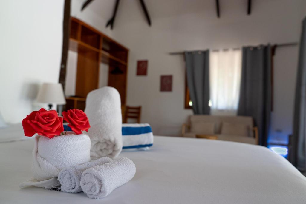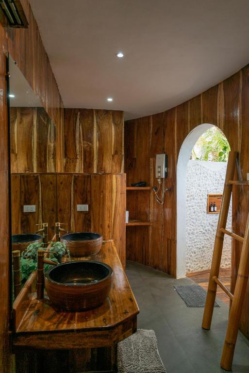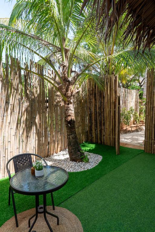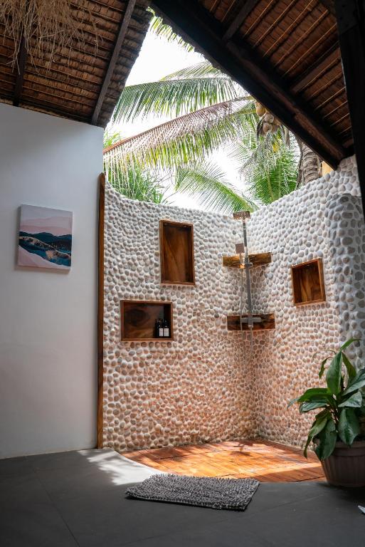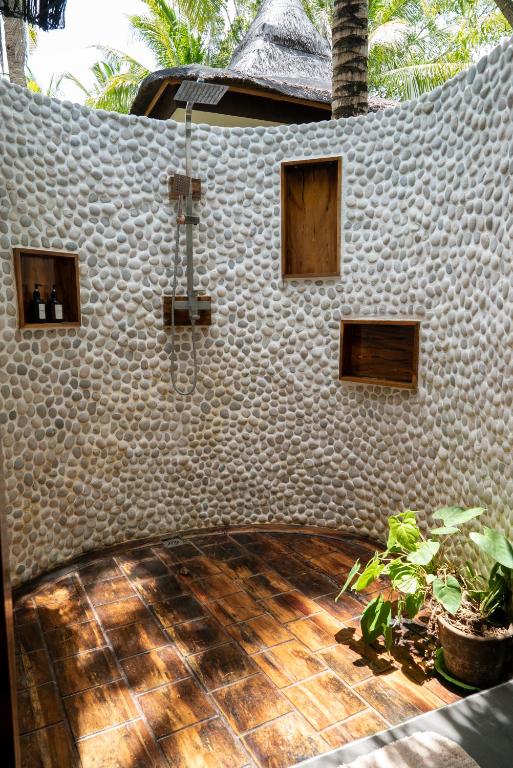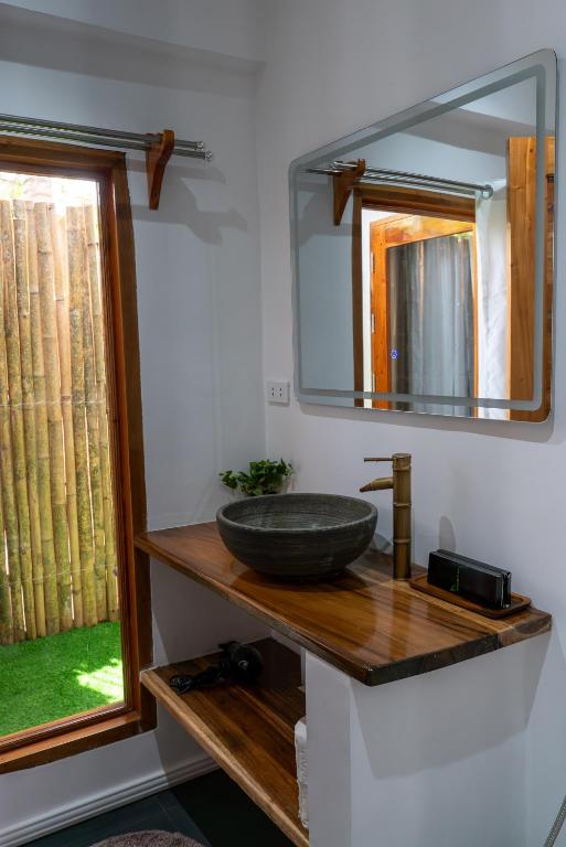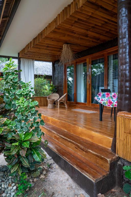 เราสองครอบครัวได้จองห้องพักสองห้องในการเดินทางครั้งนี้ โรงแรมมีทั้งหมด 16 ห้อง ห้องพักมีสไตล์ตะวันออกเฉียงใต้ ขนาดห้องกว้าง ห้องอาบน้ำเปิดโล่ง กลับคืนสู่ธรรมชาติ ดีมากจริงๆ สระว่ายน้ำของโรงแรมเปิดให้บริการตั้งแต่ 7 โมงเช้าถึง 10 โมงเช้า ทิวทัศน์ในพื้นที่ชายหาดสาธารณะของโรงแรมสวยงาม มีบันไดลงทะเลสามารถว่ายน้ำและดำน้ำตื้นได้ ในช่วงบ่ายคลื่นจะมีขนาดใหญ่ ต้องระมัดระวังเรื่องความปลอดภัย เวลาตื่นเช้า 6 โมงเพื่อไปลงทะเลถือเป็นเวลาเหมาะสมที่สุด เพราะจะเงียบสงบ สามารถเห็นเต่าทะเลและงูทะเล และปลาโลมาขนาดใหญ่ได้ง่ายกว่าพื้นที่ดำน้ำที่โรงแรม CoCo ที่เคยเข้าพัก โรงแรมมีค่าใช้จ่ายเพิ่มเติมสำหรับอาหารเช้า กลางวัน และเย็น รสชาติก็ใช้ได้ อุปกรณ์ดำน้ำตื้นและเสื้อชูชีพต้องเช่าพิเศษ ค่าใช้จ่ายเพิ่มเติม นอกจากนั้น ที่นี่เป็นสถานที่ที่ดีสำหรับการนั่งมองไปไกล สั่งเครื่องดื่มนั่งที่หน้าผา ฟังเสียงคลื่น ไม่มีใครรบกวน สบายมาก ถ้าชอบความสงบและสไตล์การก่อสร้างแบบนี้แนะนำที่นี่อย่างยิ่ง โรงแรมเงียบมาก แนะนำไม่ให้เลือกห้องที่ถูกที่สุด เพราะอยู่ใกล้ที่จอดรถมอเตอร์ไซค์ อาจมีเสียงรบกวนบ้าง การเลือกห้องที่สองหรือสาม และราคาแพงกว่าจะเงียบกว่าและสะดวกสบายกว่ามาก พนักงานที่แผนกต้อนรับบริการค่อนข้างรวดเร็ว หากคุณมีความต้องการอะไรก็สามารถแก้ไขได้ทันที เช่น ของฝากมีค่าของฉันตกอยู่ที่แผนกต้อนรับ แต่ต่อมาก็หาเจอ กลุ่มพนักงานที่อายุน้อยและเป็นมิตร ต้องให้คะแนนห้าดาว หากมีโอกาสครั้งหน้าจะเลือกที่นี่อีกสักไม่กี่วัน